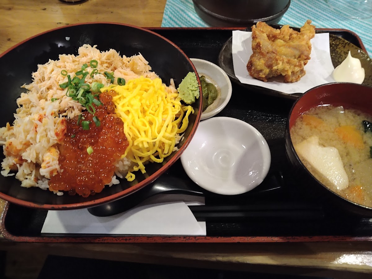 For something a little heartier, go for the ねむろ丼 ザンギ追加 (Nemuro rice bowl with extra Zangi). This dish is a perfect combination of rice topped with crispy fried chicken, creating a satisfying meal. The 鶏ザンギ&カニコロ定食 (chicken Zangi and crab croquette set meal) is another excellent choice, offering a delicious mix of crispy, tender chicken and the rich, creamy texture of crab croquettes.